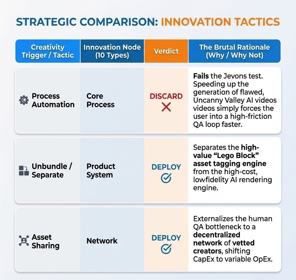 Implication: By abandoning the dream of 100% automated video rendering and focusing on asset routing and structural unbundling, Icon can eliminate their compute bleed and return to high-margin software economics.