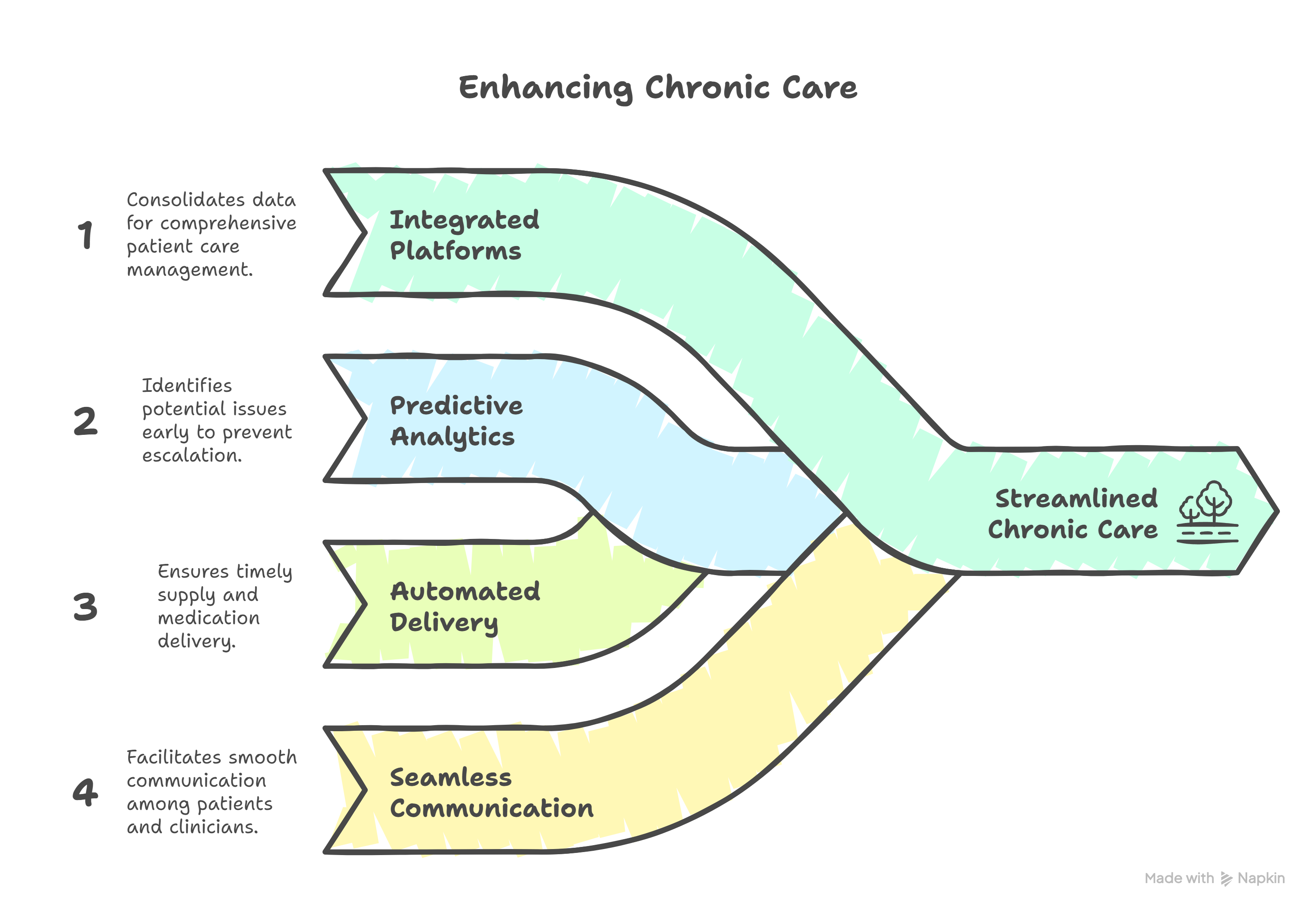 Consider chronic care management today. It might involve separate interactions with primary care physicians, specialists, pharmacists, along with juggling multiple devices (glucose monitors, blood pressure cuffs), apps, and educational materials. The patient is often the unwilling systems integrator.