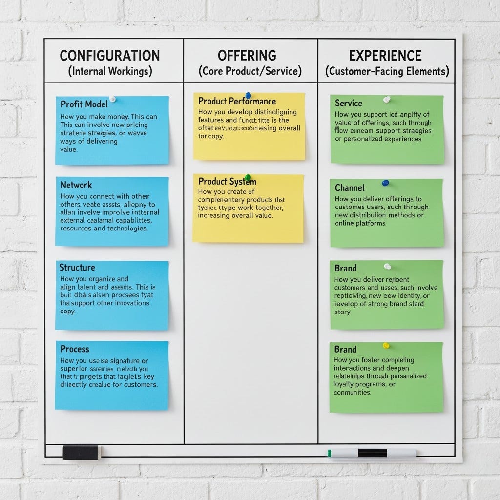 A strategy is just a wish without tactical execution. Doblin’s 10 Types of Innovation is a framework that helps us think holistically about building a defensible system. A strong moat is rarely just one thing; it’s a combination of mutually reinforcing innovations. We’ll group them into three categories.