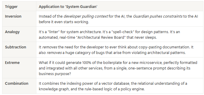 Guided Generation: The Guardian provides the AI agent not just with “context files” but with a set of constraints and instructions. It essentially “briefs” the AI: “You will generate code for this task. It must use the