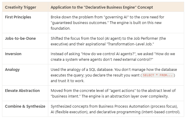 How do you come up with a concept like the "Declarative Business Engine"? By systematically applying creative frameworks.