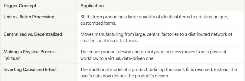 The Novel Solution: A company that masters the process of generative design and 3D printing at scale. A customer scans their foot with their phone. A generative AI designs a shoe perfectly contoured to their foot, optimized for their gait. The design is sent to a local micro-factory and 3D printed on demand. The core innovation isn't the shoe itself; it's the end-to-end, data-driven process that can create a unique, bespoke product for the cost of a mass-produced one.