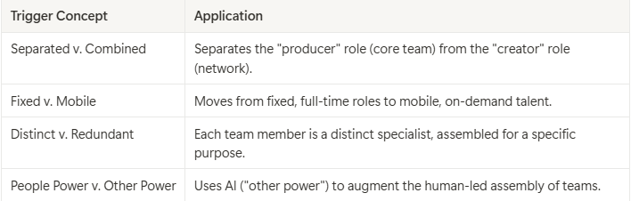 The Novel Solution: A company that is structured not as a collection of employees, but as a "talent operating system." They maintain a deeply vetted, credentialed network of freelancers. When a client comes with a project, the company's core team acts as producers, using AI to instantly assemble a bespoke "dream team" from the network, perfectly matched to the project's needs. The structure is fluid, assembling and disassembling teams on demand. This gets the job done faster, with higher quality talent, and at a lower cost than a traditional agency model.