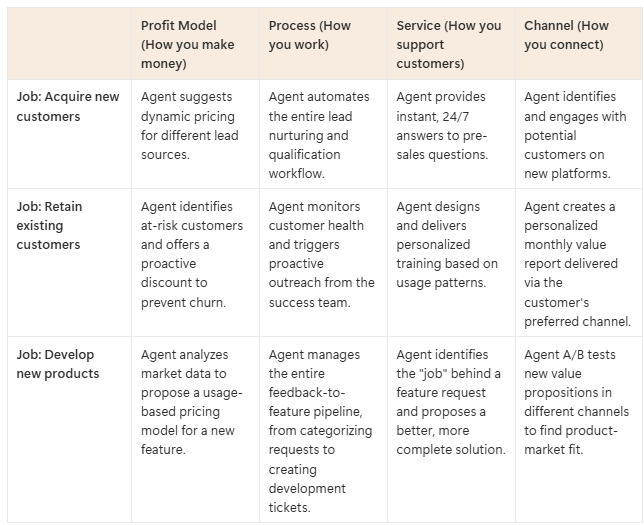 Imagine an agent tasked with the outcome of “improving customer success and retention.” It could innovate in multiple ways: