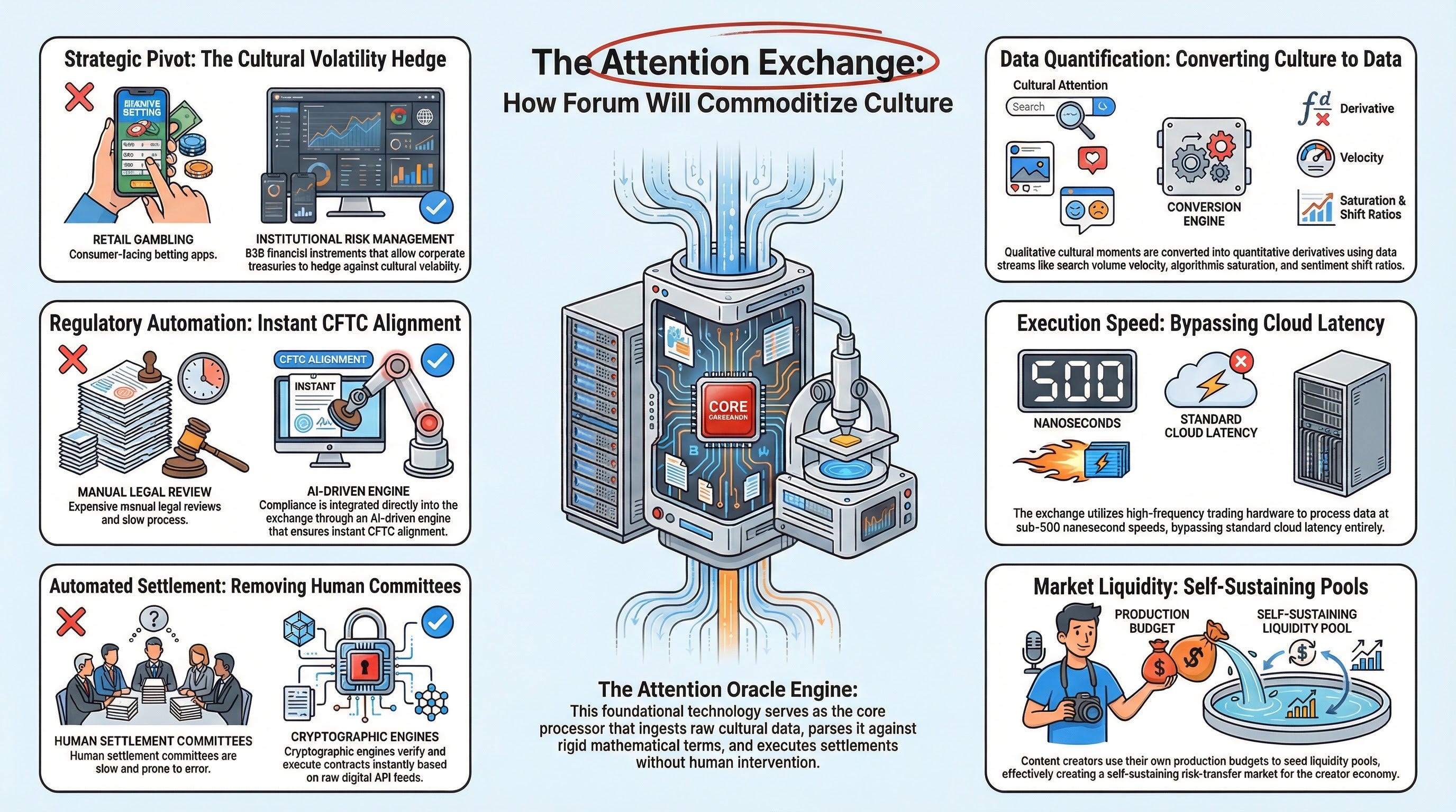 Implication: Forum’s foundational technology cannot just be the exchange itself. Our core IP has to be the Attention Oracle Engine.