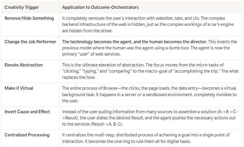 In this model, the "browser" becomes a background process, an execution engine for the agent, not a user-facing tool. The user's job is elevated from doing the work to defining the outcome. This is a solution with far fewer visible features but infinitely more power. It eliminates the struggle, the cognitive load, and the inefficiencies of the old paradigm entirely. The human is the strategist; the technology is the operator.
