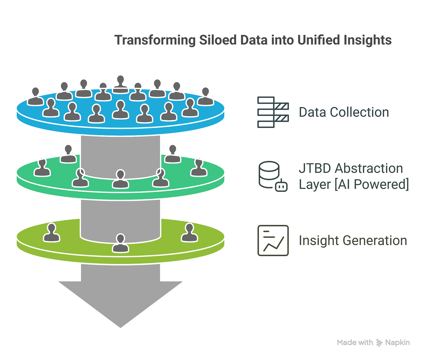 The JTBD perspective prompts a crucial shift: move from forcing data conformity across disparate systems to building a unified understanding layer that intelligently interprets and connects signals based on the customer's job progress and interaction context. It's about abstracting away the messy details of underlying identifiers and focusing on the meaning.
