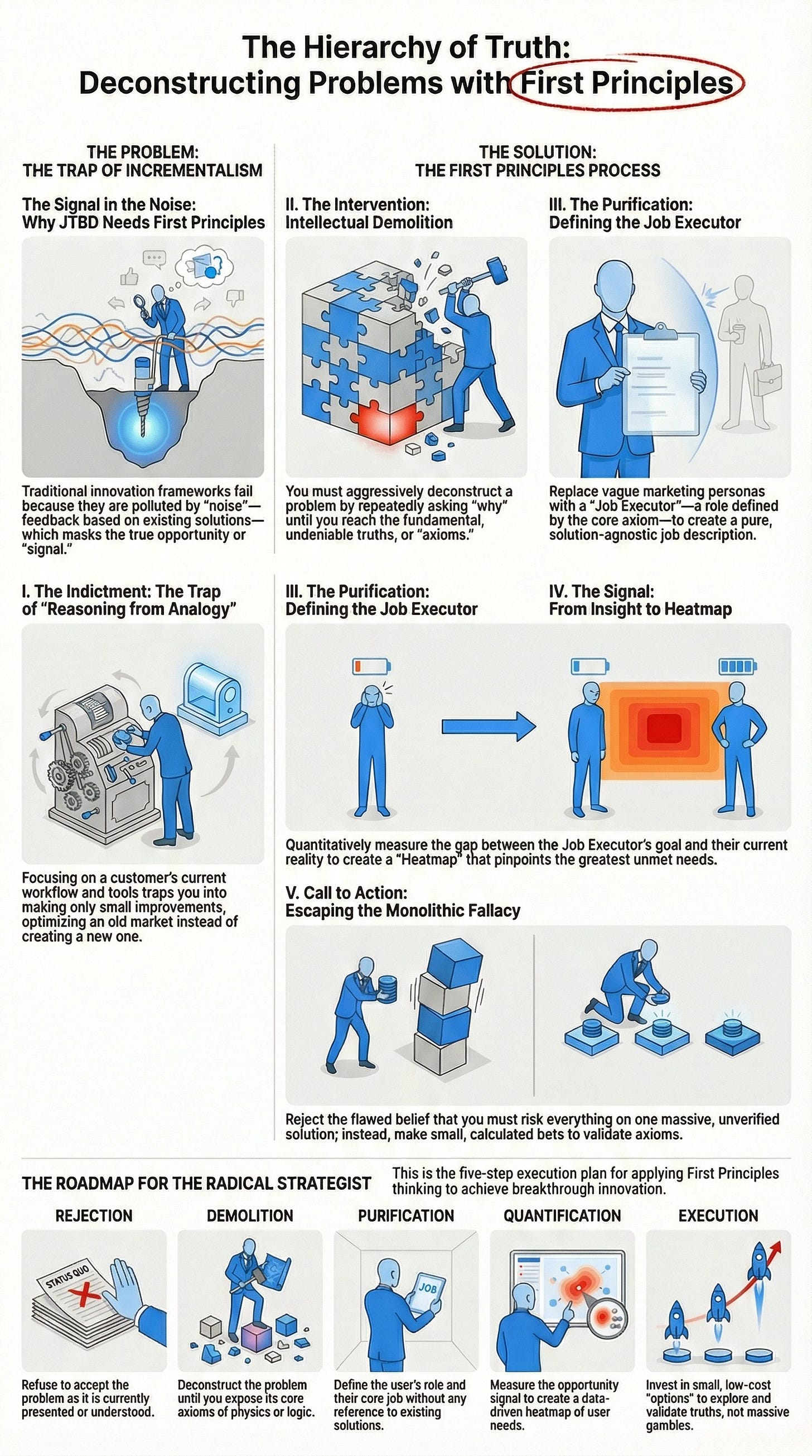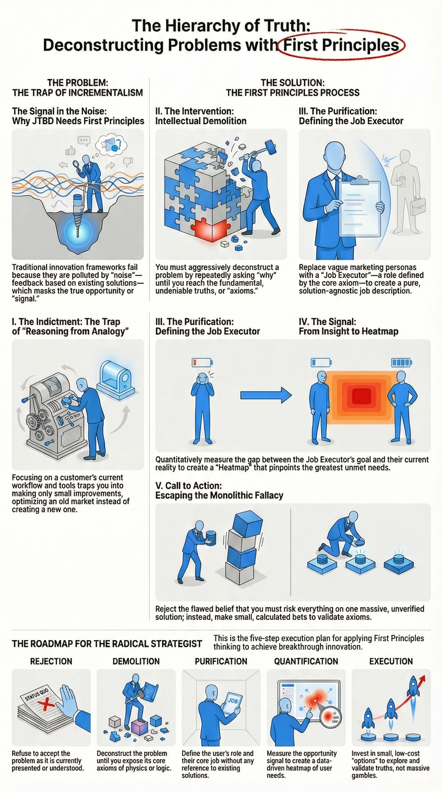 To innovate, we need to stop listening to the noise. We need to find the Signal. And the only way to isolate the Signal is to subject our assumptions to a process of intellectual demolition known as First Principles Thinking.
