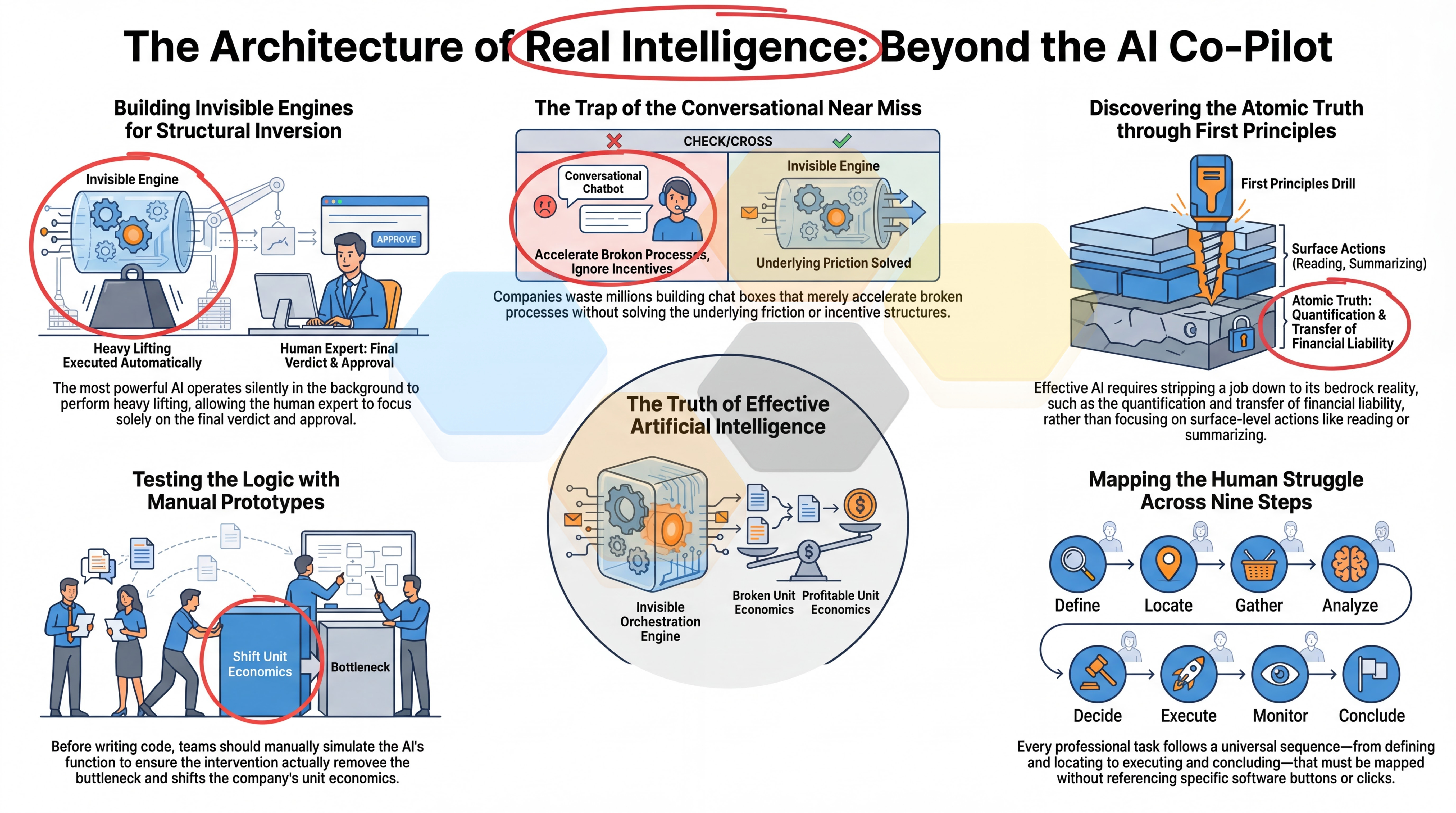 They needed a deterministic, physics-based toolkit to strip the problem down to its core. They needed to stop looking at the software, and start looking at the undeniable axioms of the job itself. If you don’t map the job from the atomic level up, you’ll always build the wrong thing. You’ll build a shiny co-pilot that no one actually needs.