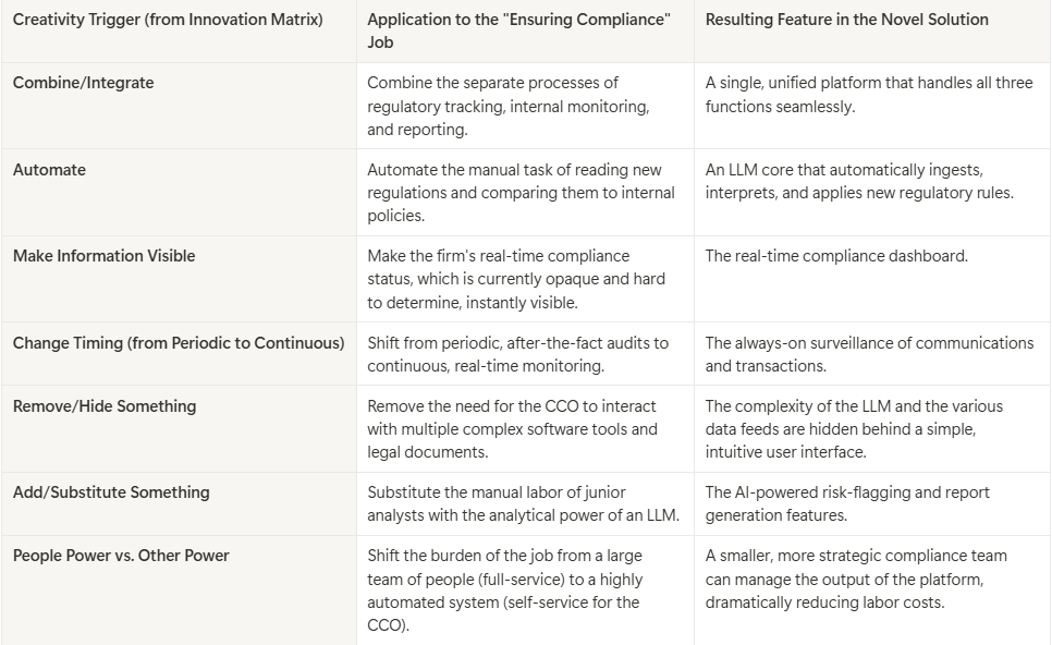 The Job-to-be-Done: For the Chief Compliance Officer (CCO) at a financial institution, the core job is: "Ensuring the firm continuously meets all regulatory requirements to avoid fines and reputational damage."